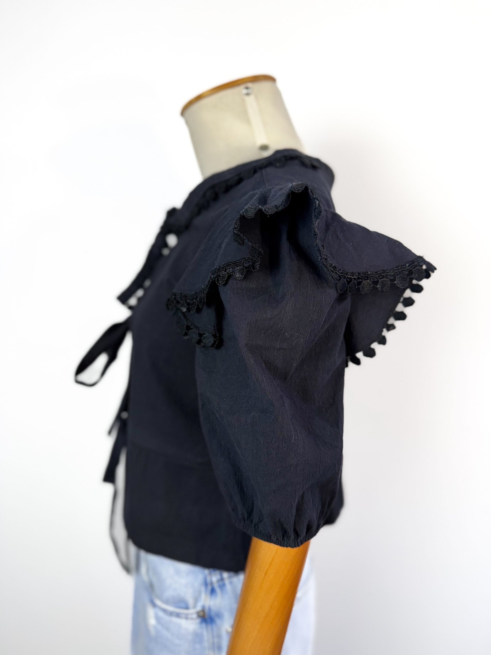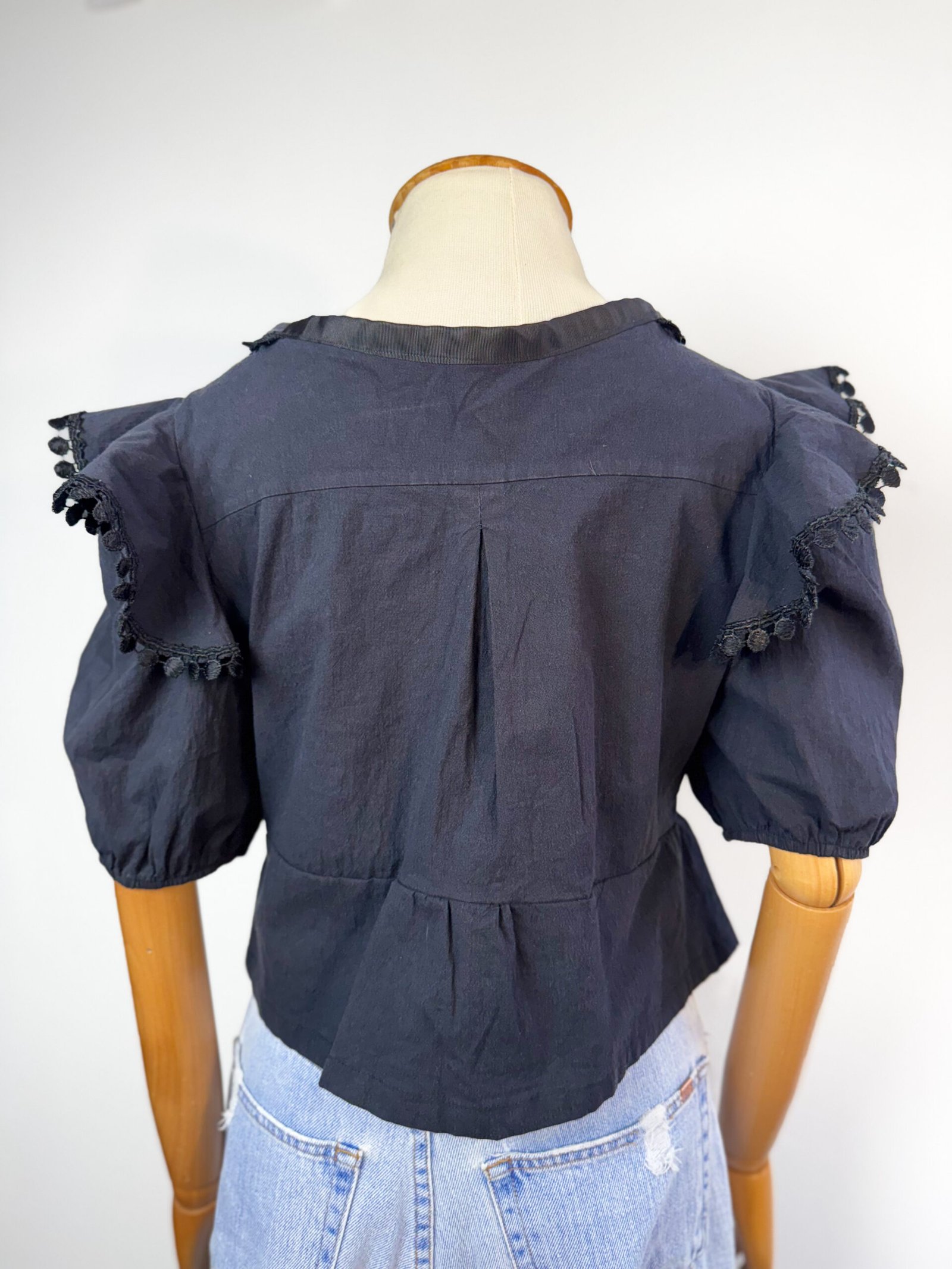 Blusa Preta Manga Bufante e Amarrações